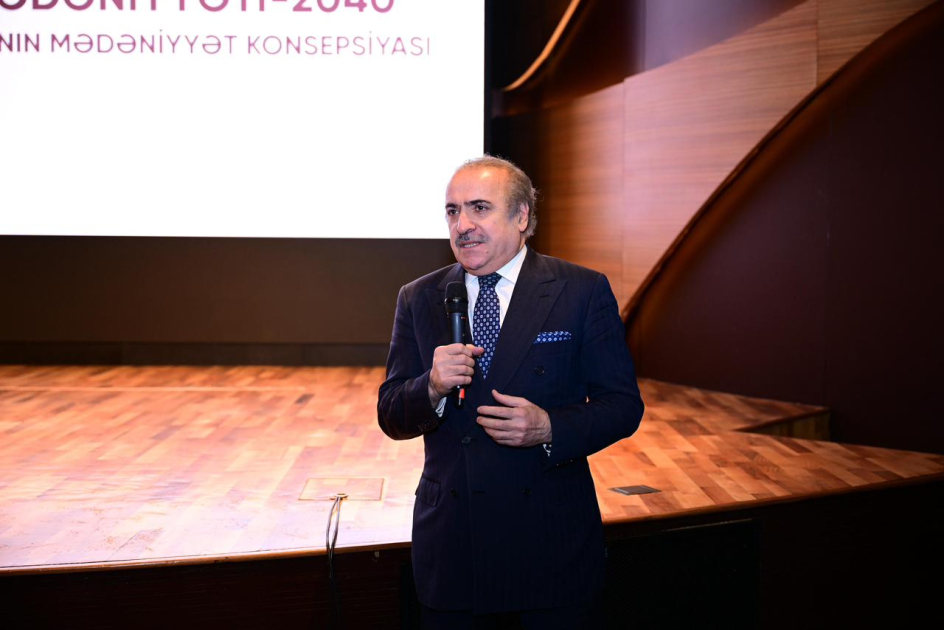 Tədbirdə çıxış edən mədəniyyət naziri Adil Kərimli konsepsiyanın əsas məqsədləri, prioritet istiqamətləri və qarşıda duran vəzifələr barədə ətraflı məlumat verib.