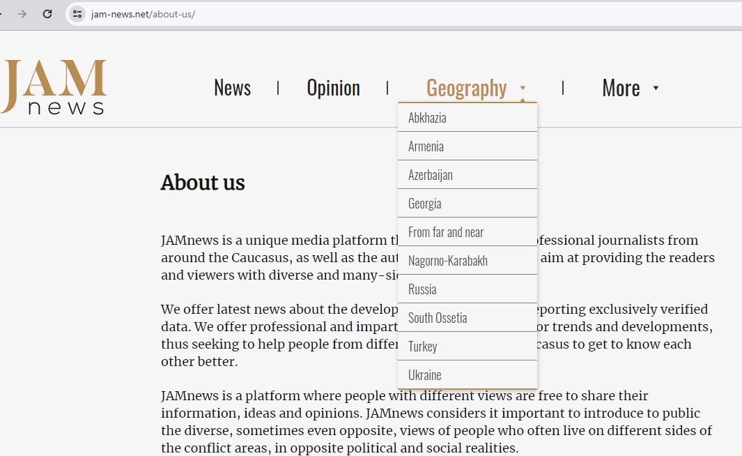 Məsələn, “JAMnews” bütövlükdə Qafqaz regionunu əhatəyə alan xəbər portalıdır. Yaranış bəyannaməsində qeyd edir ki, “Qafqazın hər yerindən olan peşəkar jurnalistləri öz çevrəsində birləşdirir. İzləyicilərə Qafqaz ölkələri barədə obyektiv, qərəzsiz məlumatlar çatdırır”. Zahirən, xoş təəssürat yaradan sözlərdir. Amma “JAMnews”un informasiya siyasəti göstərir ki, onun qurucularının məqsəd və məramı fərqlidir. Bircə faktı qeyd edək ki, portalda “Dağlıq Qarabağ” regionu müstəqil subyekt kimi göstərilir.