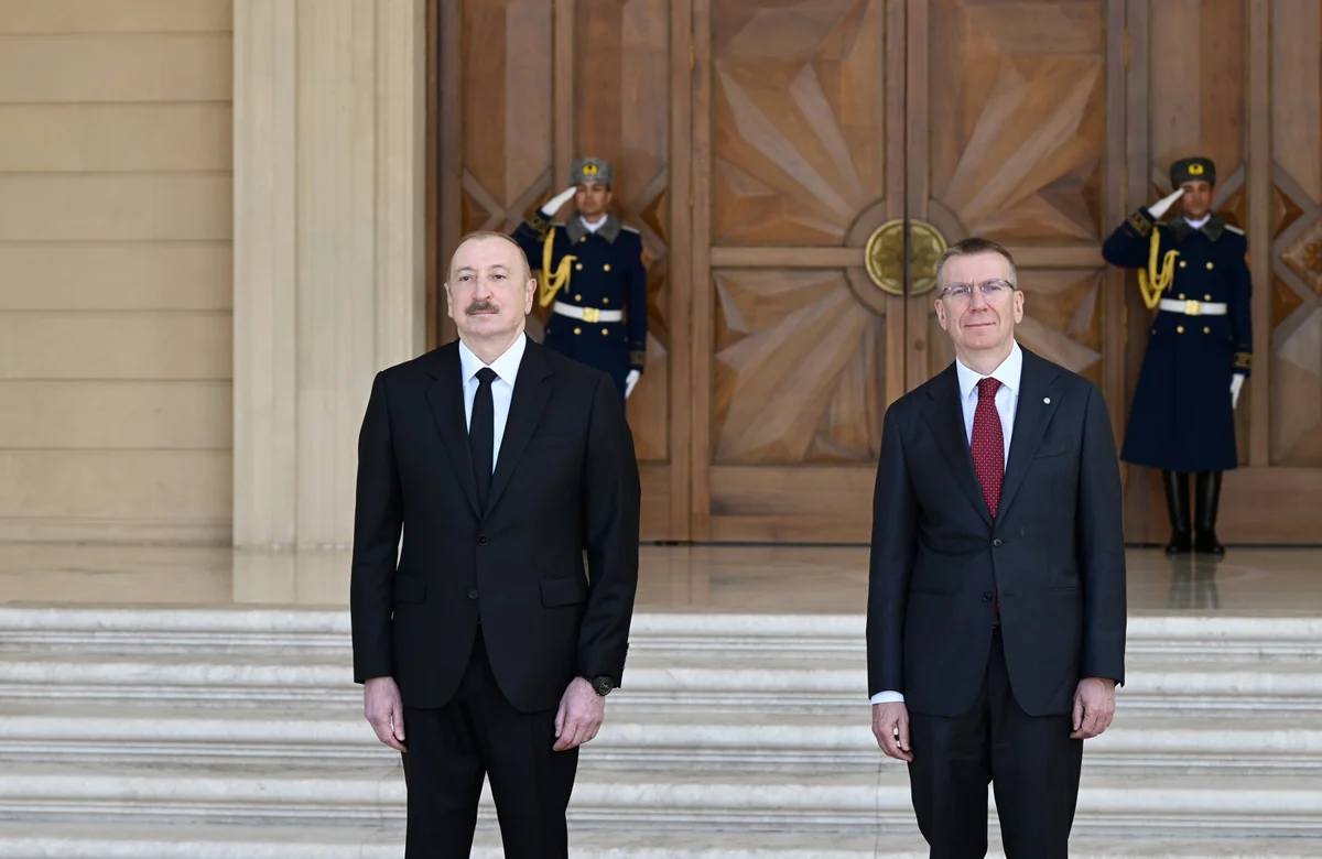 Azərbaycan Prezidenti İlham Əliyev Latviya Prezidenti Edqars Rinkeviçsi qarşıladı.