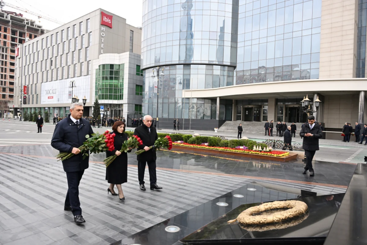 Xocalı soyqırımı abidəsini dövlət rəsmiləri ziyarət etdilər
