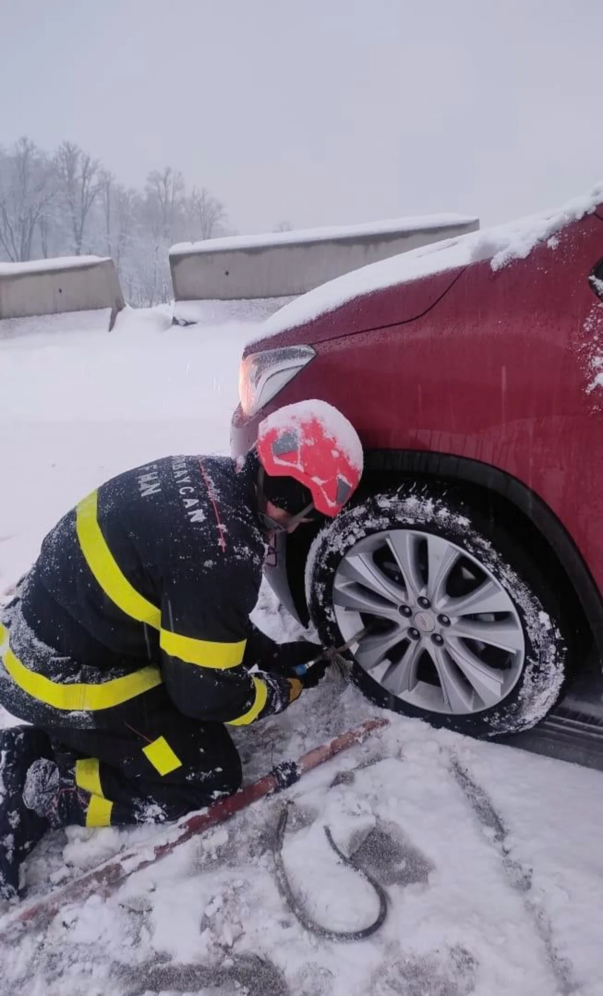 Bundan başqa, yolun buz bağlaması səbəbindən hərəkətini davam etdirə bilməyən "CHEVROLET" markalı minik avtomobilinin hərəkəti təmin edilib.